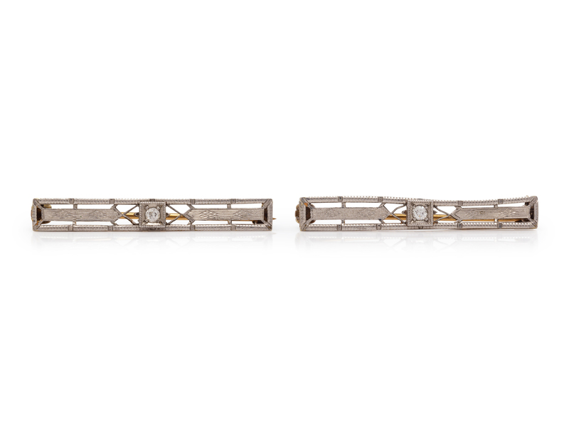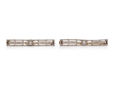 A Pair of Edwardian Platinum Topped Yellow Gold and Diamond Bar Brooches, Krementz & Co.,