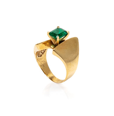 A 14 Karat Yellow Gold and Emerald Ring,