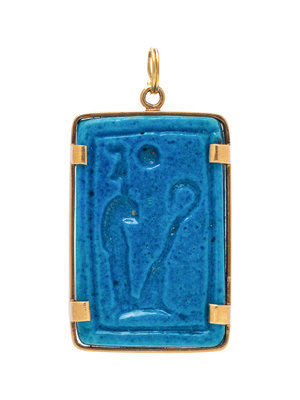 A Possibly Ancient Yellow Gold and Faience Pendant,