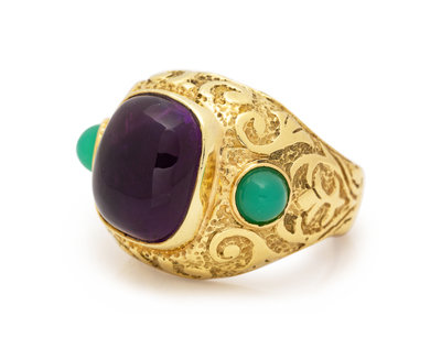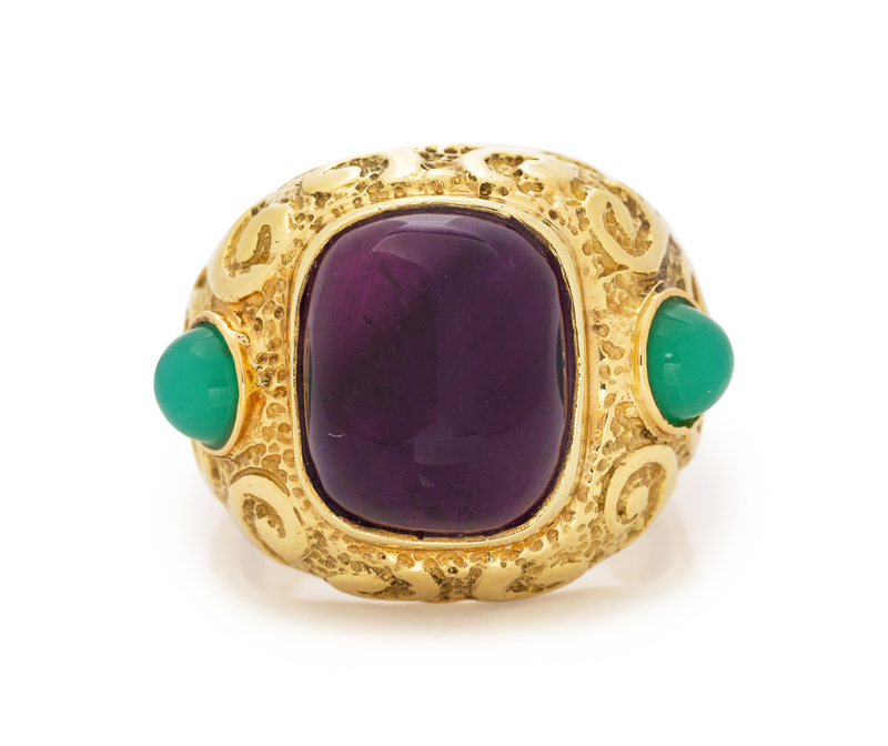 A Yellow Gold, Amethyst and Chrysoprase Ring,