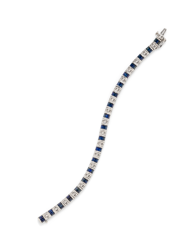 A 14 Karat White Gold, Diamond and Sapphire Bracelet,