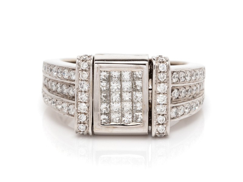 containing 20 princess cut irradiated diamonds weighing approximately 0.40 carat total, 20 princess cut diamonds weighing approximately 0.40 carat total and numerous round brilliant cut diamonds weighing approximately 0.65 carat total.