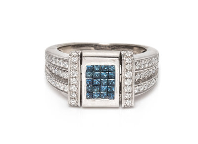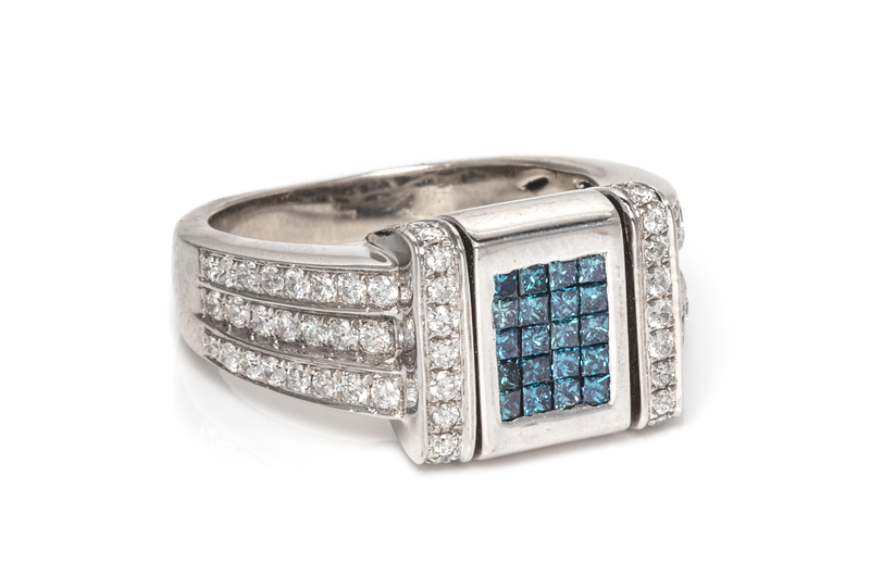 A 14 Karat White Gold, Irradiated Diamond and Diamond Ring,