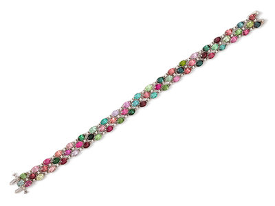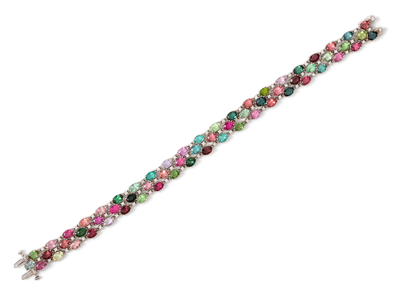 containing 63 oval shape mixed cut gemstones and 63 round brilliant cut diamonds weighing approximately 0.63 carat total.