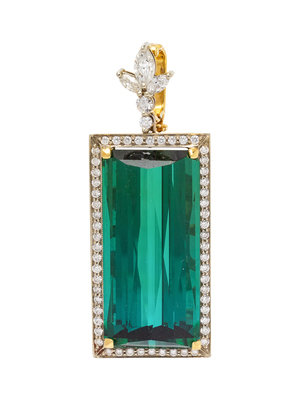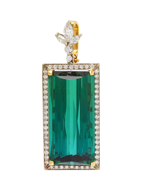 An 18 Karat Bicolor Gold, Green Tourmaline and Diamond Pendant,