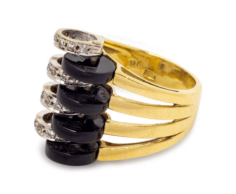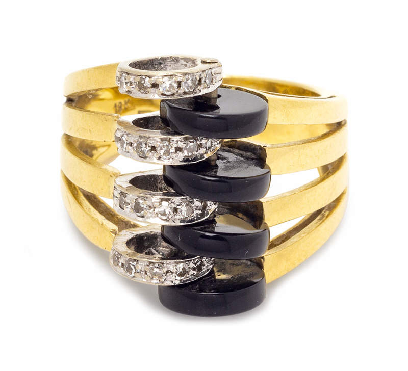 An 18 Karat Bicolor Gold, Onyx and Diamond Ring, Italian,