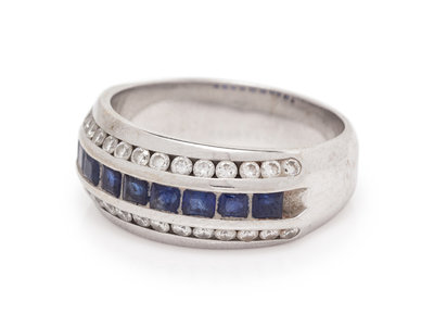 A 14 Karat White Gold, Sapphire and Diamond Ring,