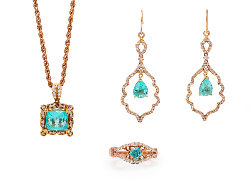 A Collection of Rose Gold, Tourmaline and Diamond Jewelry,