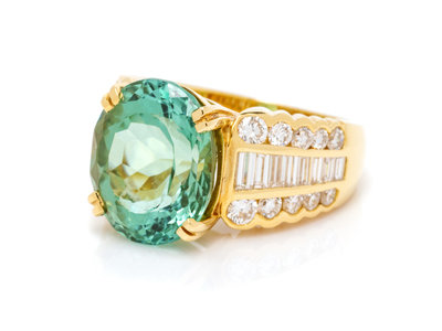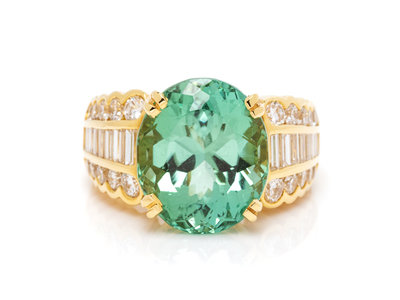 An 18 Karat Yellow Gold, Tourmaline and Diamond Ring,