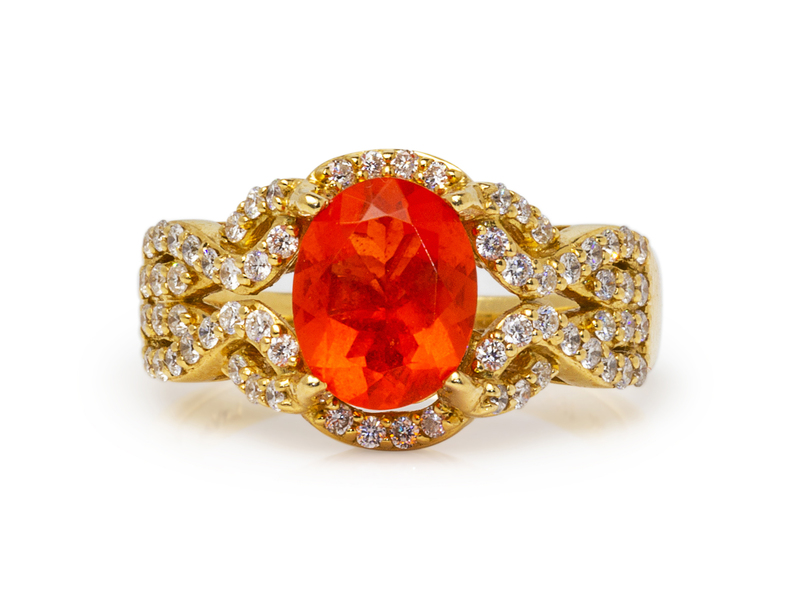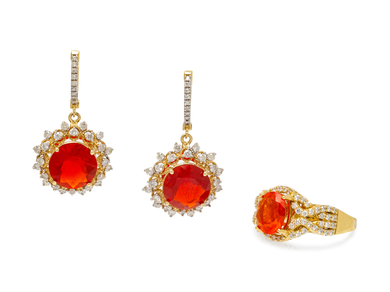 A Collection of Yellow Gold, Fire Opal and Diamond Jewelry,