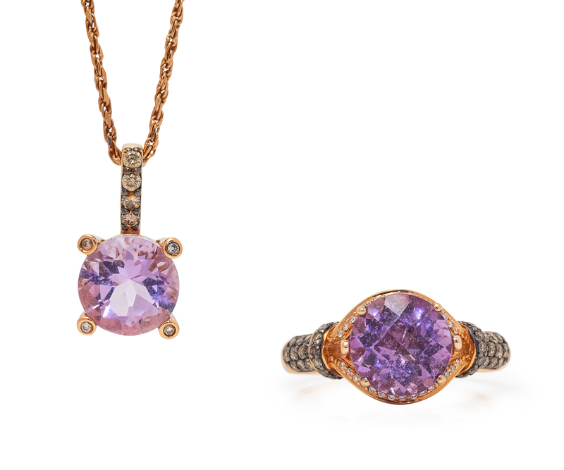 A Collection of 14 Karat Rose Gold, Amethyst, Diamond and Colored Diamond Jewelry, Le Vian,