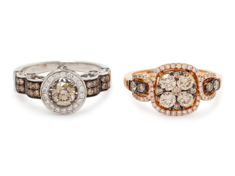 A Collection of 14 Karat Gold, Colored Diamond and Diamond Rings, Le Vian,