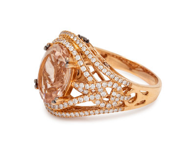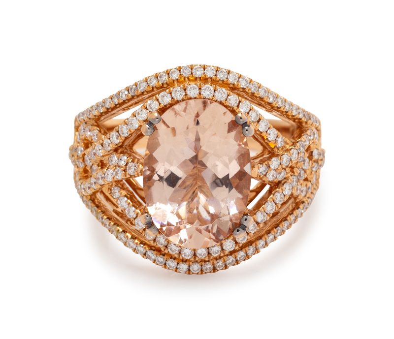 An 18 Karat Rose Gold, Morganite, Diamond and Colored Diamond Ring,