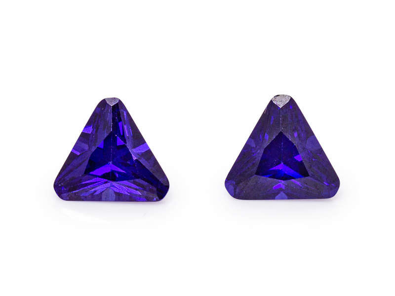 consisting of two triangular mixed cut tanzanites weighing approximately 2.52 carats total and measuring approximately 5.97 x 6.65 x 3.77 mm and 5.95 x 6.68 x 3.66 mm respectively.