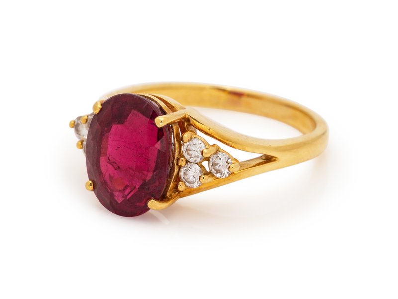 An 18 Karat Yellow Gold Rubelite Tourmaline and Diamond Ring,