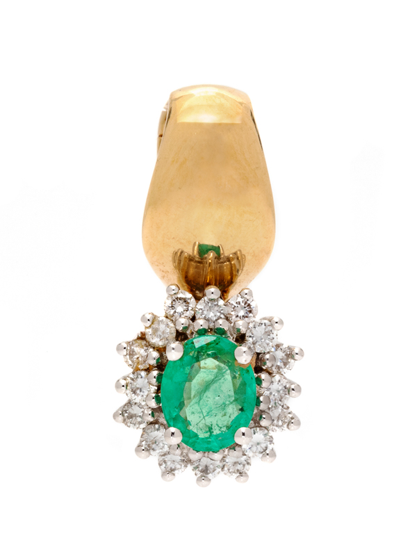 A 14 Karat Yellow Gold, Platinum, Emerald and Diamond Pendant,