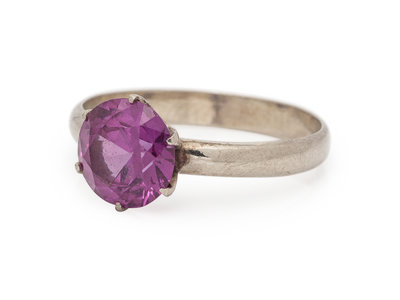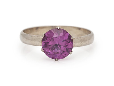 A 14 Karat White Gold and Synthetic Color Change Sapphire Ring,