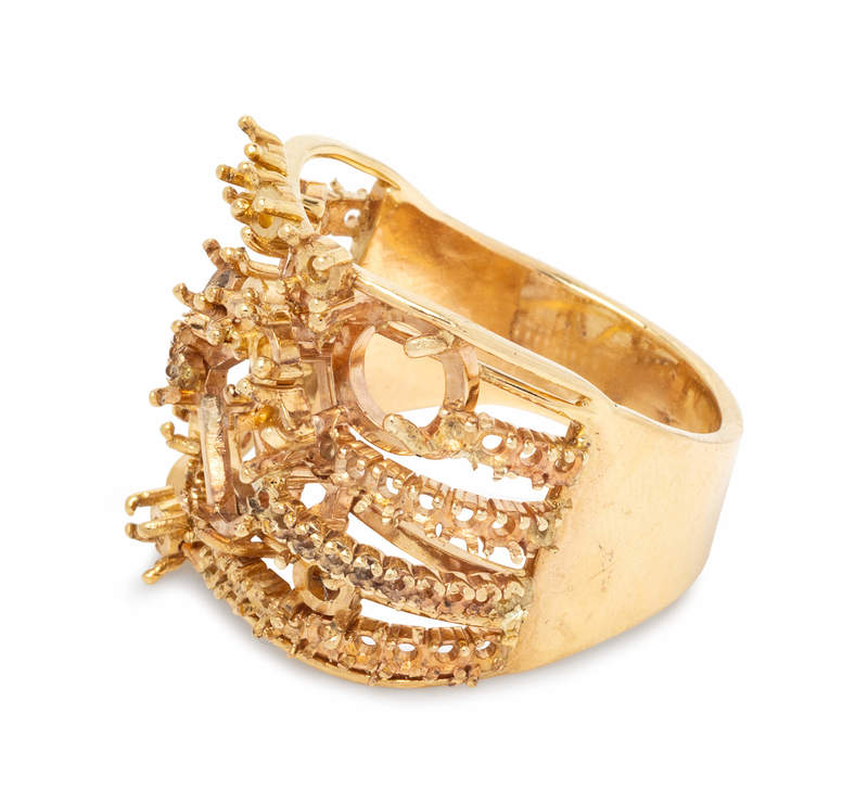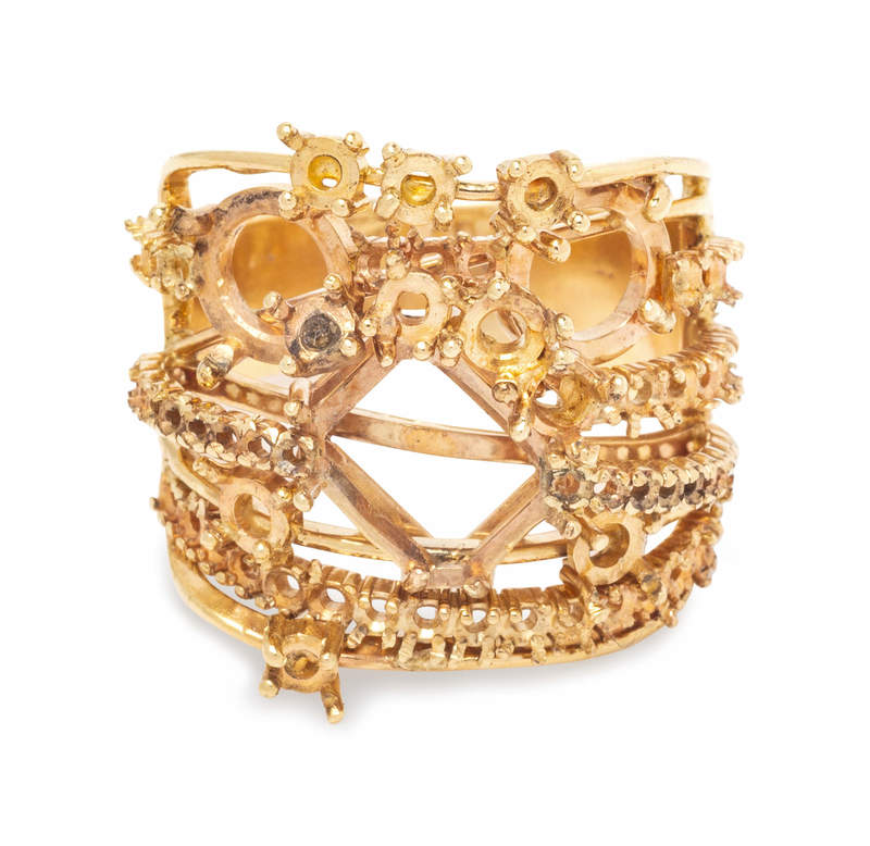 consisting of a yellow gold mounting together with 59 loose round brilliant cut diamonds weighing approximately 2.25 carats total.