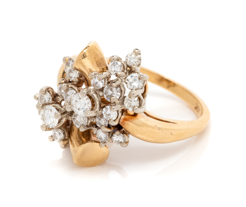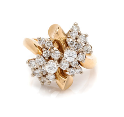 A 14 Karat Bicolor Gold and Diamond Ring,