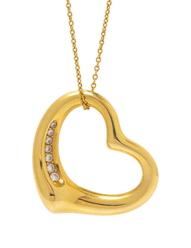 An 18 Karat Yellow Gold and Diamond 'Open Heart' Necklace, Elsa Peretti for Tiffany & Co., Spain,
