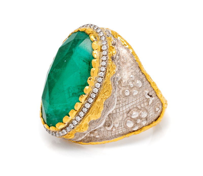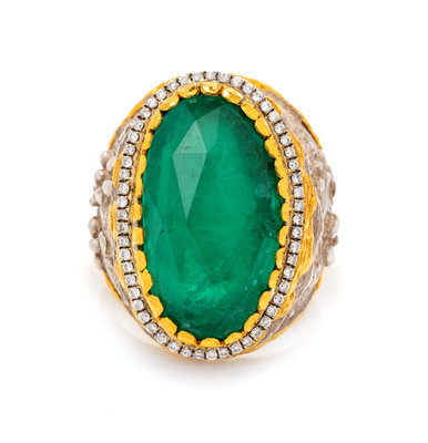 A Sterling Silver, 24 Karat Gold, Assembled Gemstone and Diamond Ring, Victor Velyan,