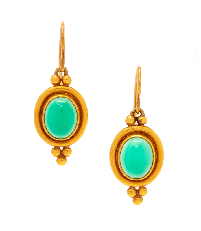 A Pair of 22 Karat Yellow Gold and Chrysoprase Earrings, Temple St. Clair,