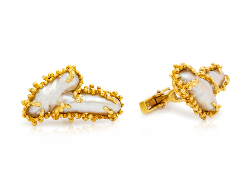A Pair of 18 Karat Yellow Gold and Cultured Pearl Cufflinks, Barbara Anton,