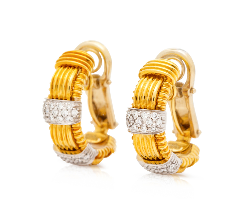 A Pair of 18 Karat Bicolor Gold and Diamond 'Appasionata' Hoop Earclips, Roberto Coin,