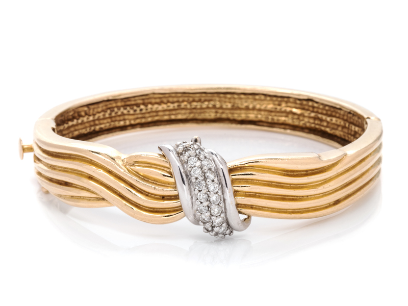 A 14 Karat Bicolor Gold and Diamond Bangle Bracelet,