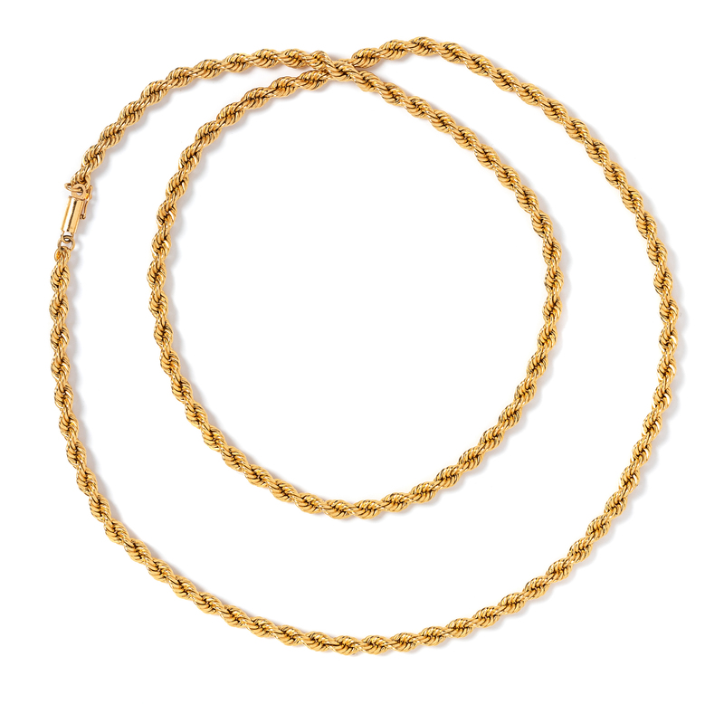 A 14 Karat Yellow Gold Rope Chain Necklace,