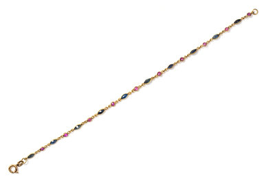 A 14 Karat Yellow Gold, Sapphire and Ruby Bracelet,