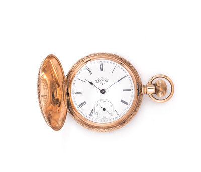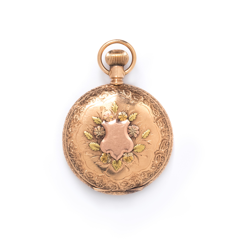 A 14 Karat Bicolor Gold Hunter Case Pocket Watch, Elgin,