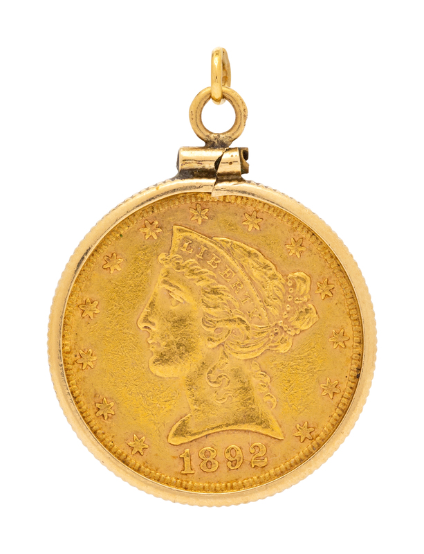 A 14 Karat Yellow Gold and US $5 Dollar Liberty Head Coin Pendant,