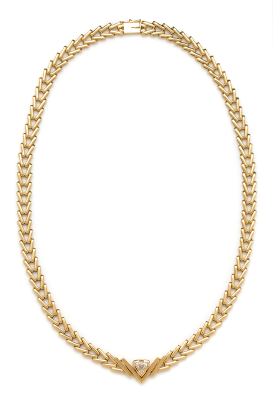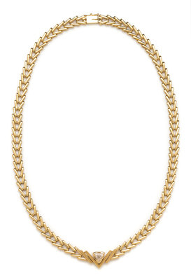 A 14 Karat Yellow Gold and Diamond Necklace,