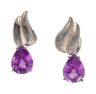 containing two pear shape amethyst measuring approximately 18.30 x 13.25 x 9.75 mm, posts with clip backs.