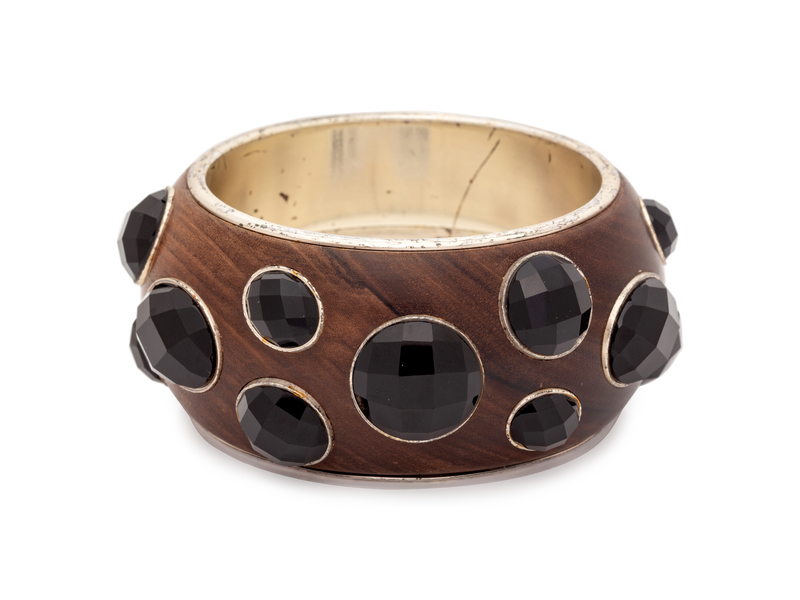 A Sterling Silver, Wood and Glass Bangle Bracelet, Bottega Veneta,