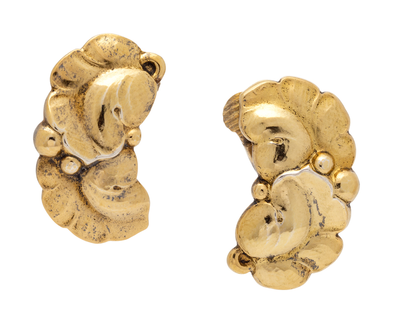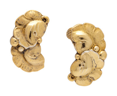 A Pair of Gilt Sterling Silver Floral Motif Earclips, Harald Nielson for Georg Jensen,