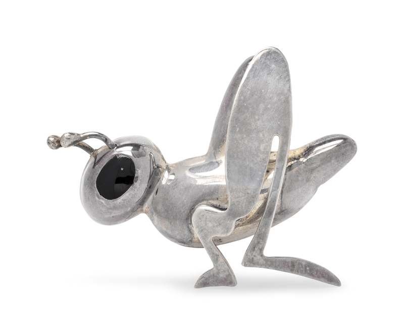 A Sterling Silver and Enamel Grasshopper Brooch, Mexican,