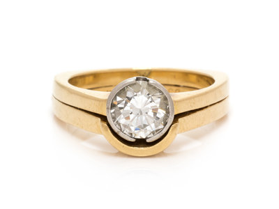 A Yellow Gold, Platinum and Diamond Solitaire Ring,