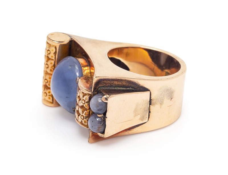 A Retro 14 Karat Rose Gold and Star Sapphire Ring,