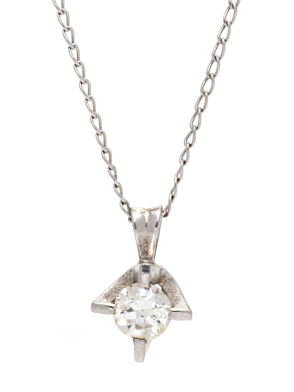 containing one round brilliant cut diamond weighing approximately 0.27 carat, suspended from a cable link chain.