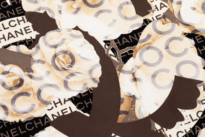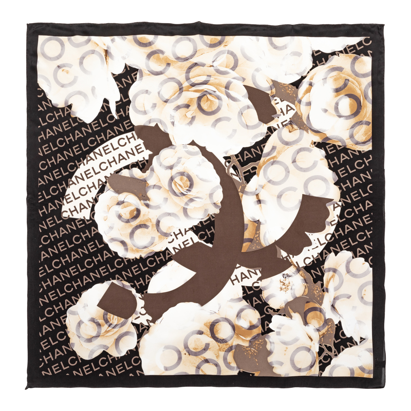 Chanel Cream, Black, Taupe Rose Scarf,