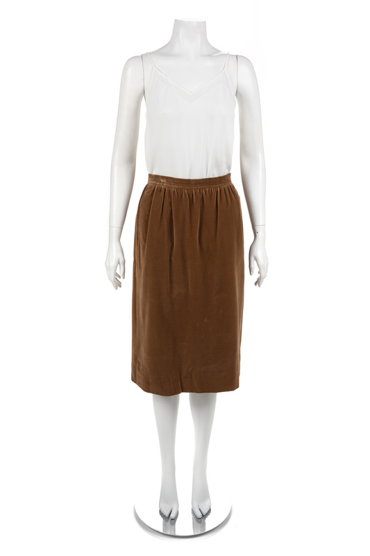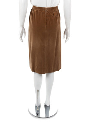 The Ungaro straight skirt is made of velvet with hidden side seam pockets, a narrow waistband, and back zip closure.