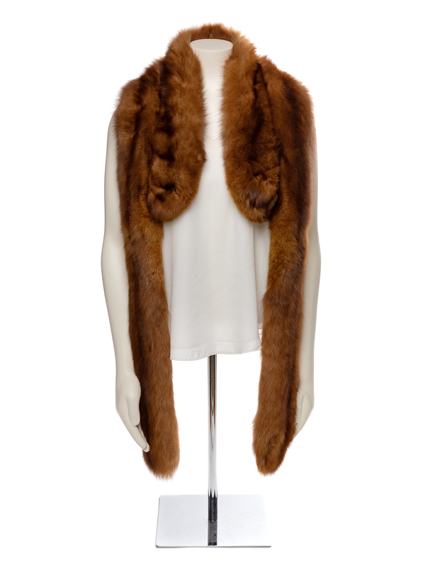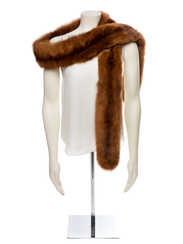 Long brown mink scarf. Unlabelled. Lined.