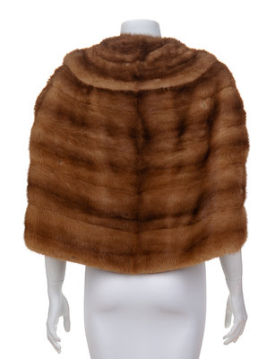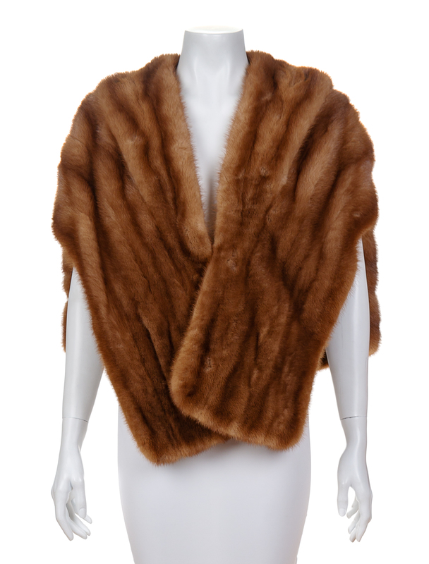 Brown mink stole with shawl collar, front slip pockets and fully lined in brown silk.