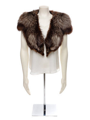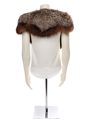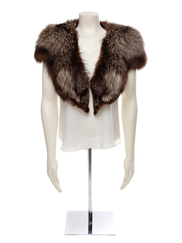 Wide grey and dark brown fox stole, which comes to points at the center front. No label