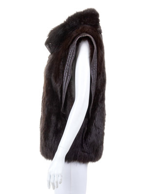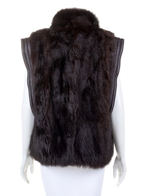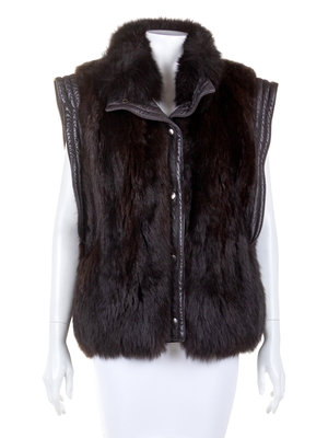 Brown Fur Jacket/Vest with Brown Leather Trim, 1980's