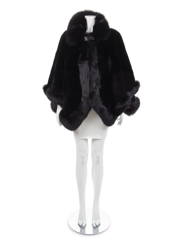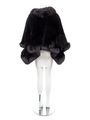 David Green Black Chinchilla Cape with Fox Trim, late 1990's-2000's