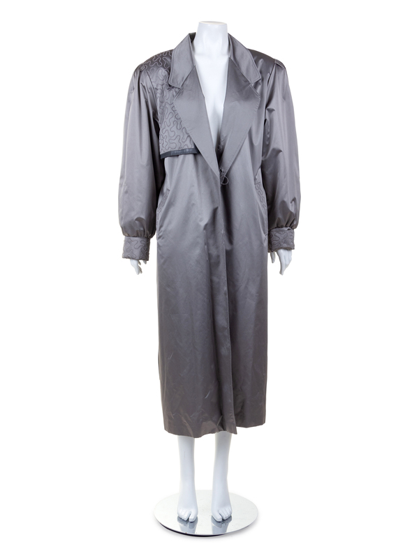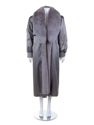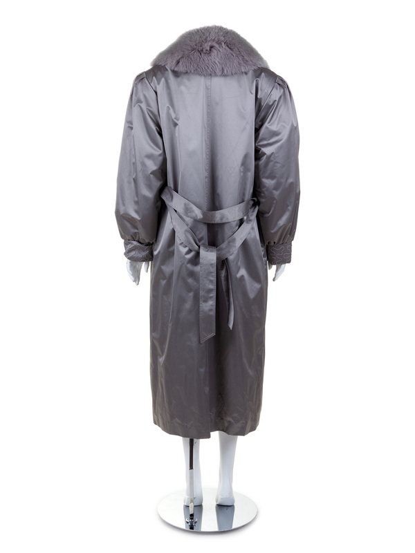 Silver Sateen and Sable and Fox Fur Lined Trench Coat, 1990's-2000's