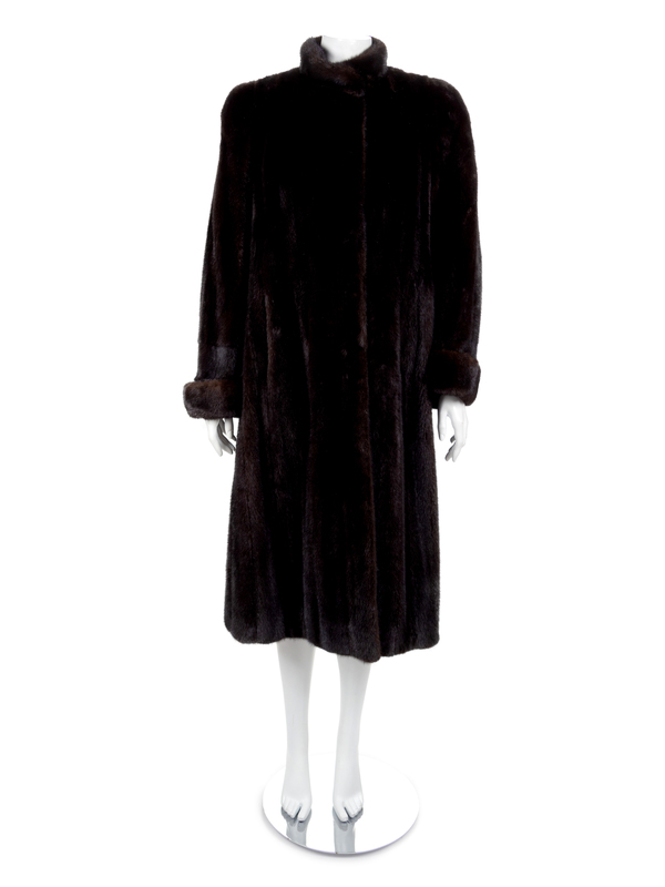 A Mahogany Full Length Mink Coat with Rolled Cuffs, 1980's